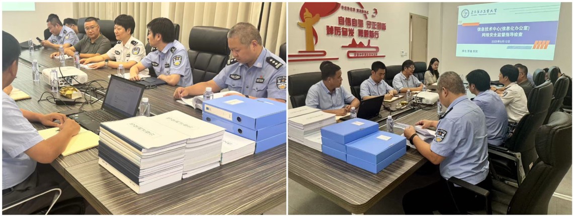 检查组一行首先听取了校党委保卫部、保卫处关于校园安全管理制度建设、风险隐患排查整改、校园安全教育等方面的工作汇报,随后实地走访了信息技术中心核心机房,现场查看了网络设备运行状态、安全设备部署、数据备份与物理环境保障情况,重点检查了网络安全管理制度、应急预案、等保测评报告、攻防演练记录等纸质台账材料。